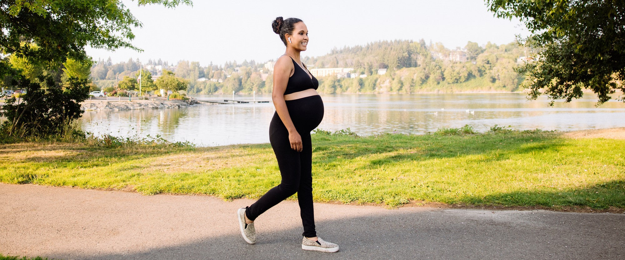 If you’re looking for a comfortable, everyday shoe to wear throughout your pregnancy, the Skechers Go Walk 6 is an always-reliable option. This casual sneaker slips on and is lace-free for easy wear. It also features the brand’s signature Goga Mat® insole for all-day wear and its ULTRA GO® responsive cushioning in the midsole. Hyper Pillar Technology™ boosts support.