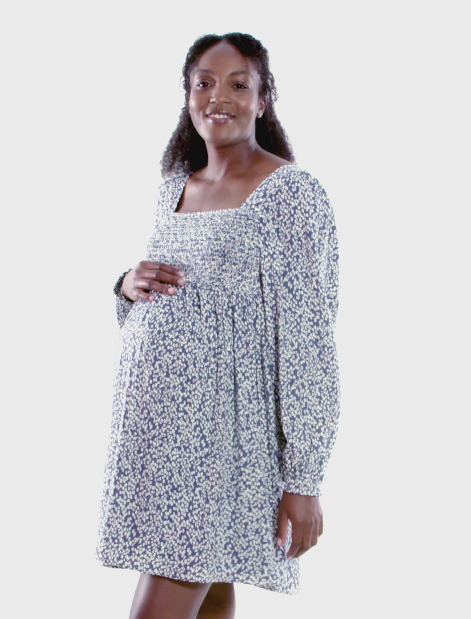 Indigo AnimalGet ready to rock your bump in style with our Long Sleeve Babydoll Smocked Dress! Featuring a luxurious satin finish, it boasts a smocked bodice and a flowy skirt that blend comfort with flair. Perfect for any occasion, from casual brunches to elegant baby showers, this dress ensures you stay chic and comfortable throughout your pregnancy journey.